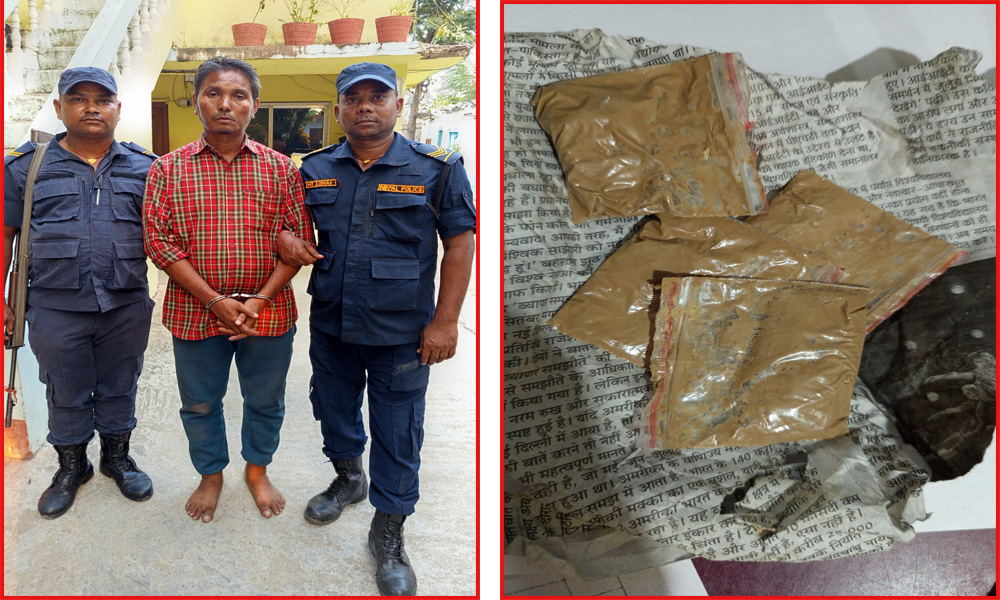 पक्राउ पर्ने व्यक्ति पर्सा जिल्लाको पटेर्वा सुगौली गाउँपालिका–३ सानो देउतीका ४२ वर्षीय रामाशंकर दास रहेका छन्। निजको पाइन्टको बाँया गोजी खानतलासी गर्दा कागजमा बेरेर राखिएको खैरो रंगको हिरोइनजस्तो देखिने १९।७८० मिलिग्राम तौलको पदार्थ फेला परेको प्रहरीले जनाएको छ।