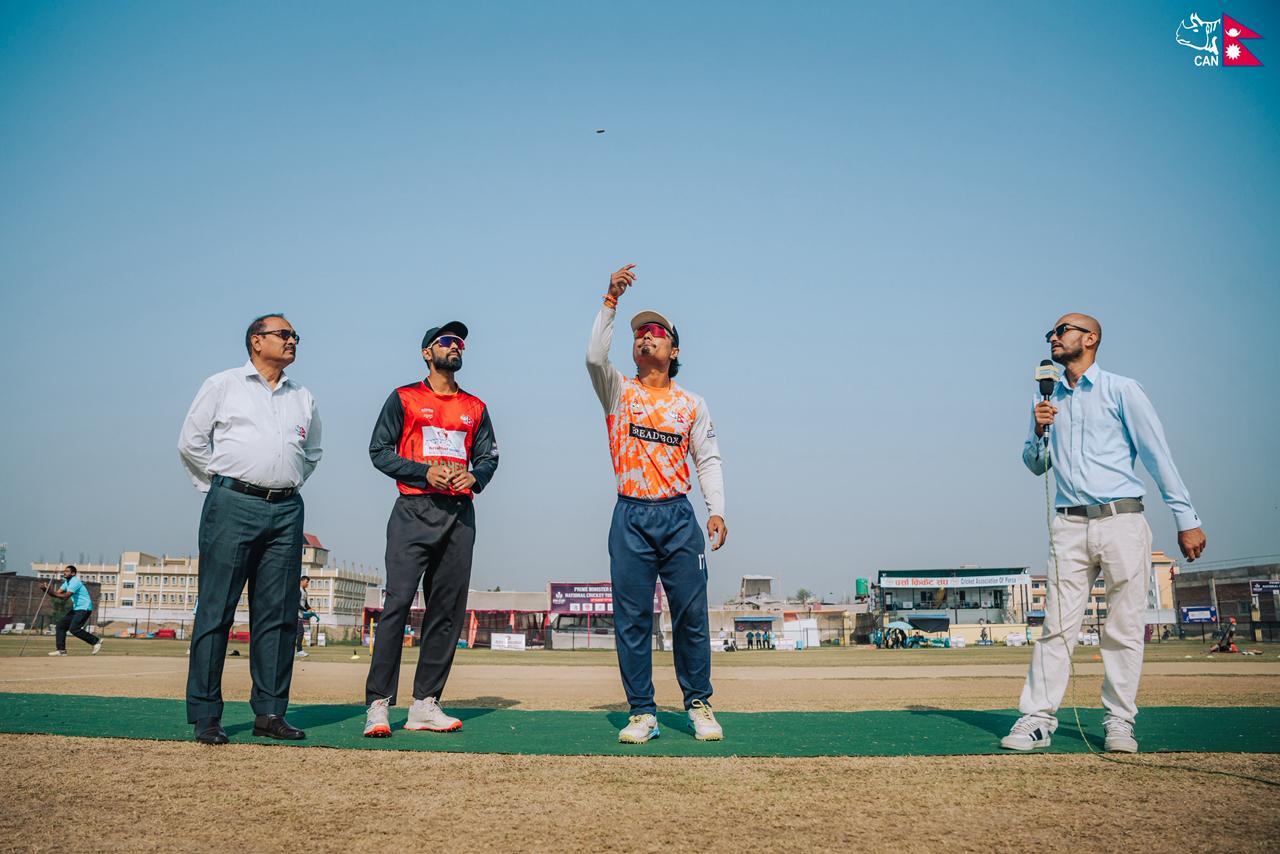 मधेस प्रदेशले पहिले टस जितेर फिल्डिङ रोजेको छ । विभागीय टोली एपीएफ क्लबलाई ब्याटिङको निम्तो दिएको छ । वीरगन्ज र जनकपुरमा प्रधानमन्त्री कप क्रिकेट भईरहेको छ ।